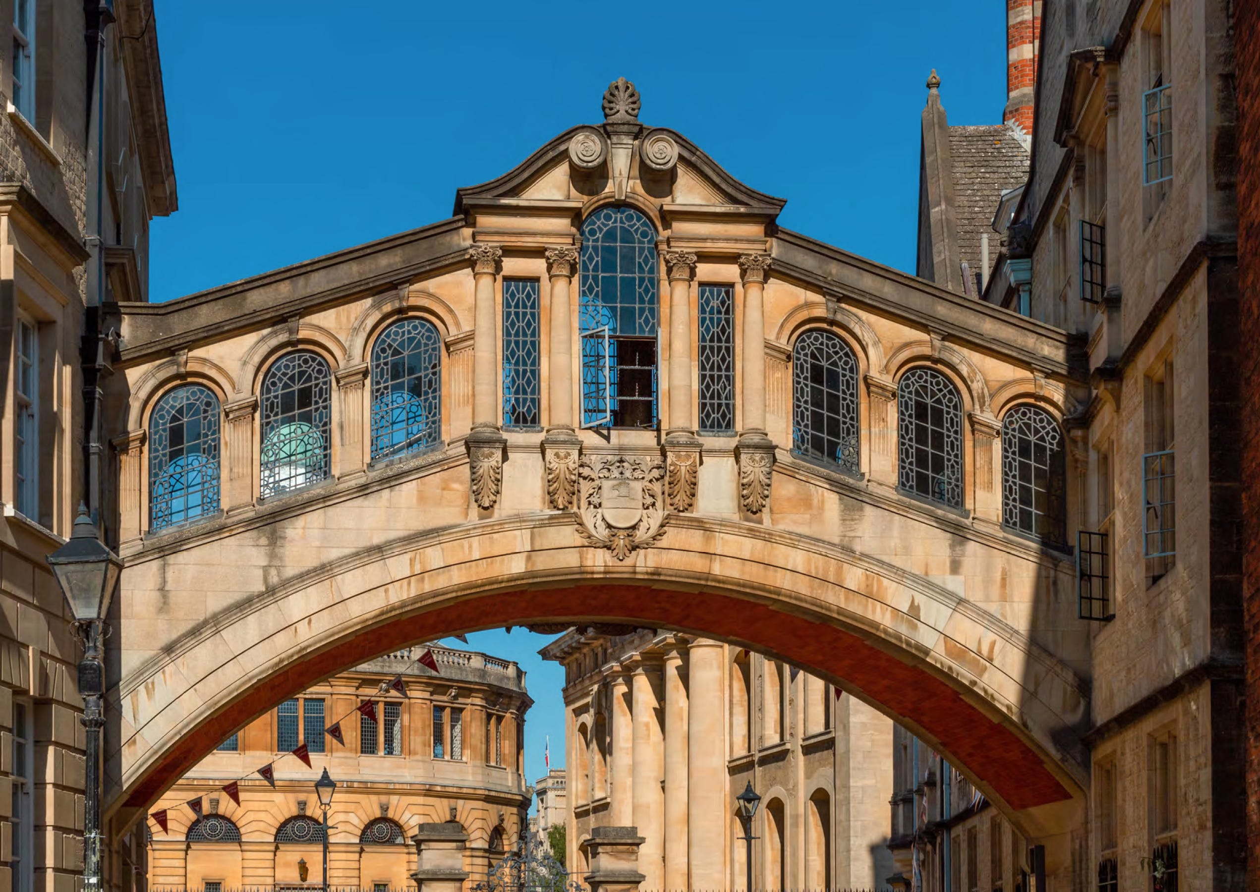 Hertford Bridge, better known as the Bridge of Sighs, is a famous bridge in Oxford. With its striking design, it has become a landmark in this city of architectural wonders. Crossing New College Lane, it acts as a link between two Hertford College buildings. Hertford bridge was given its more common name as it was falsely believed to be a replica of the Bridge of Sighs in Venice. In fact, the bridge more closely resembles the Rialto Bridge.