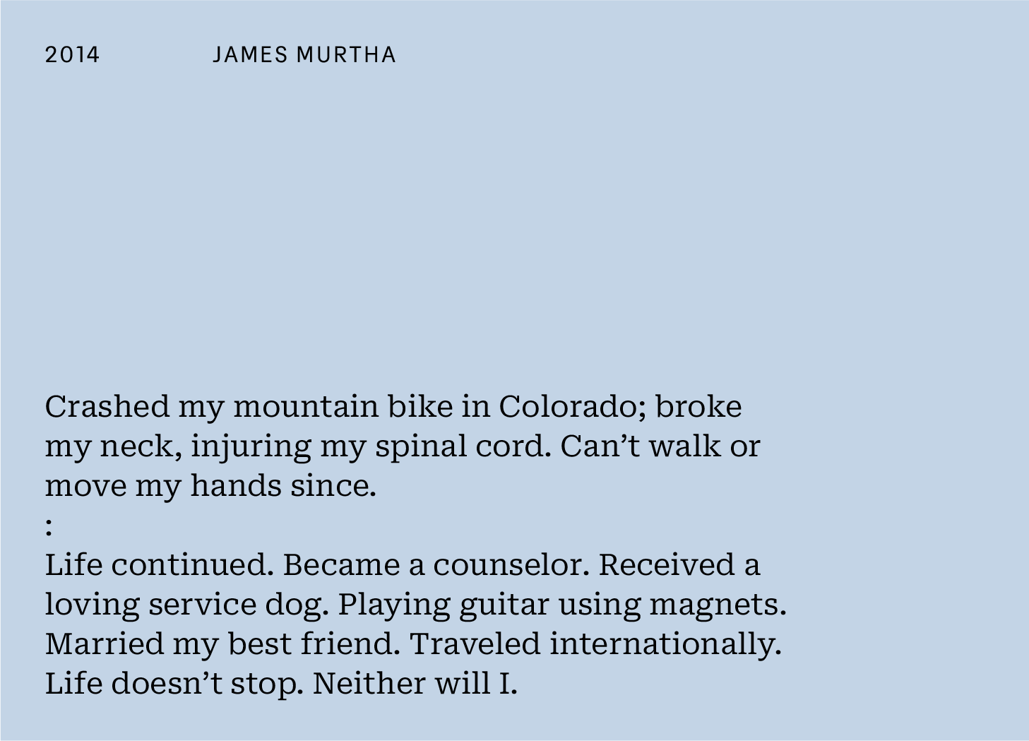 James chose an event in 2014 when we asked which moment in the last 26 years shaped the person you are today. He had just 46 words, 20:26. Here's how he responded...