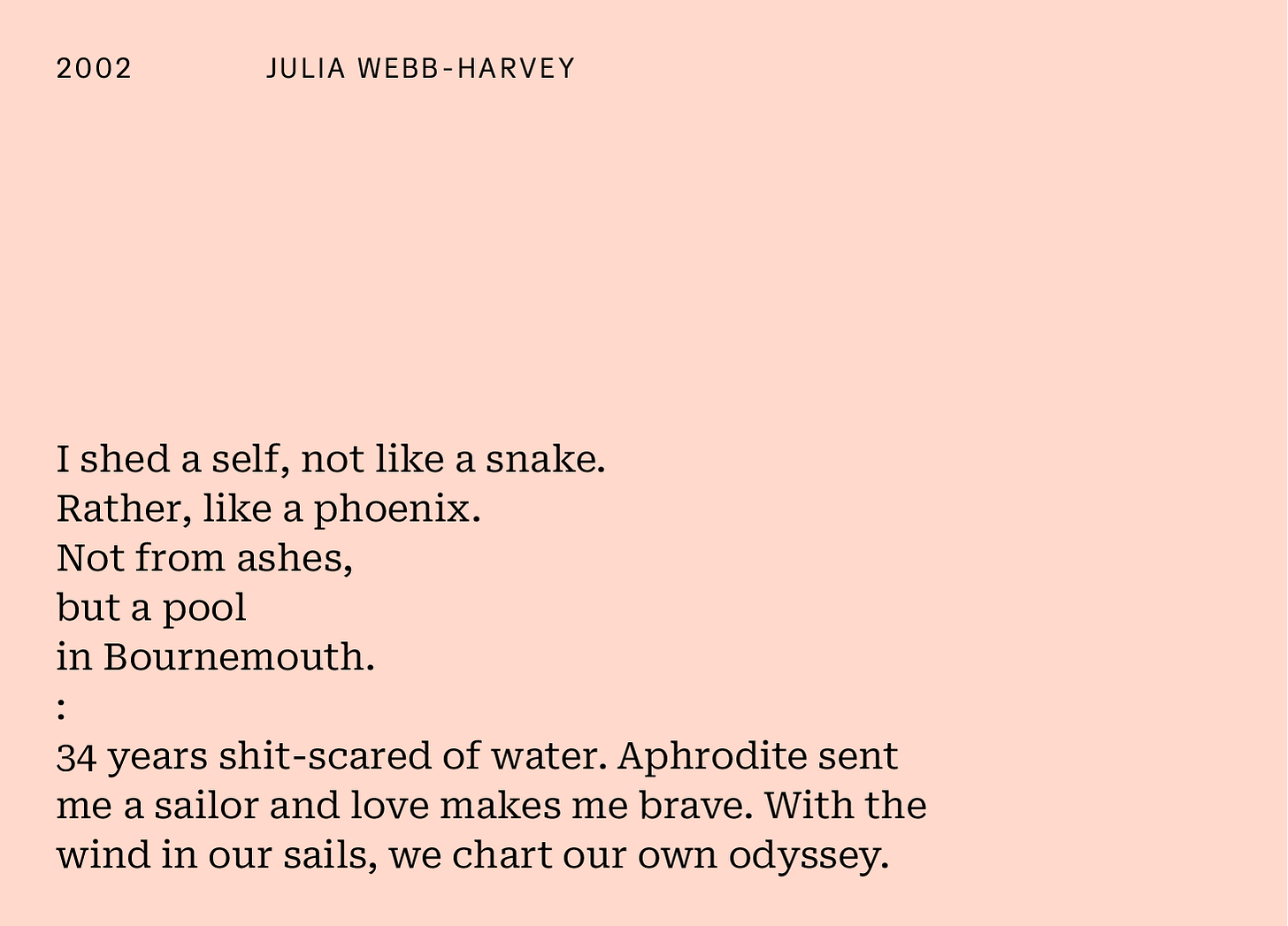 Julia chose an event in 2002 when we asked which moment in the last 26 years shaped the person you are today. She had just 46 words, 20:26. Here's how she responded...