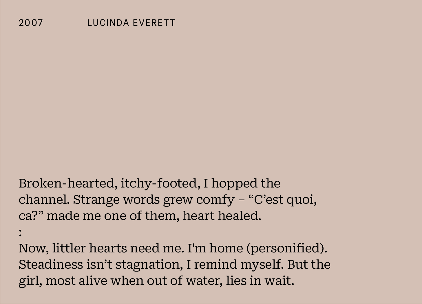 Lucinda chose an event in 2007 when we asked which moment in the last 26 years shaped the person you are today. She had just 46 words, 20:26. Here's how she responded...