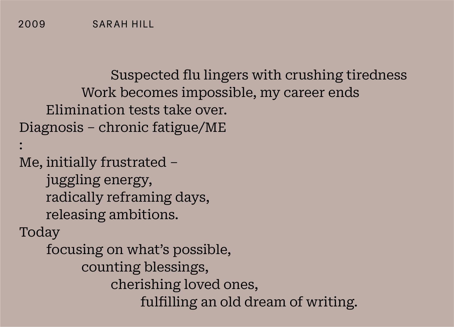 Sarah chose an event in 2009 when we asked which moment in the last 26 years shaped the person you are today. She had just 46 words, 20:26. Here's how she responded...