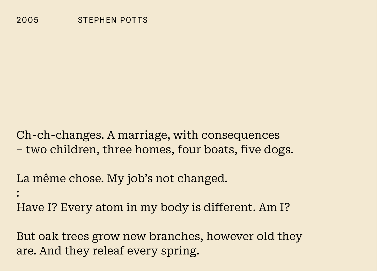 Stephen chose an event in 2005 when we asked which moment in the last 26 years shaped the person you are today. He had just 46 words, 20:26. Here's how he responded...