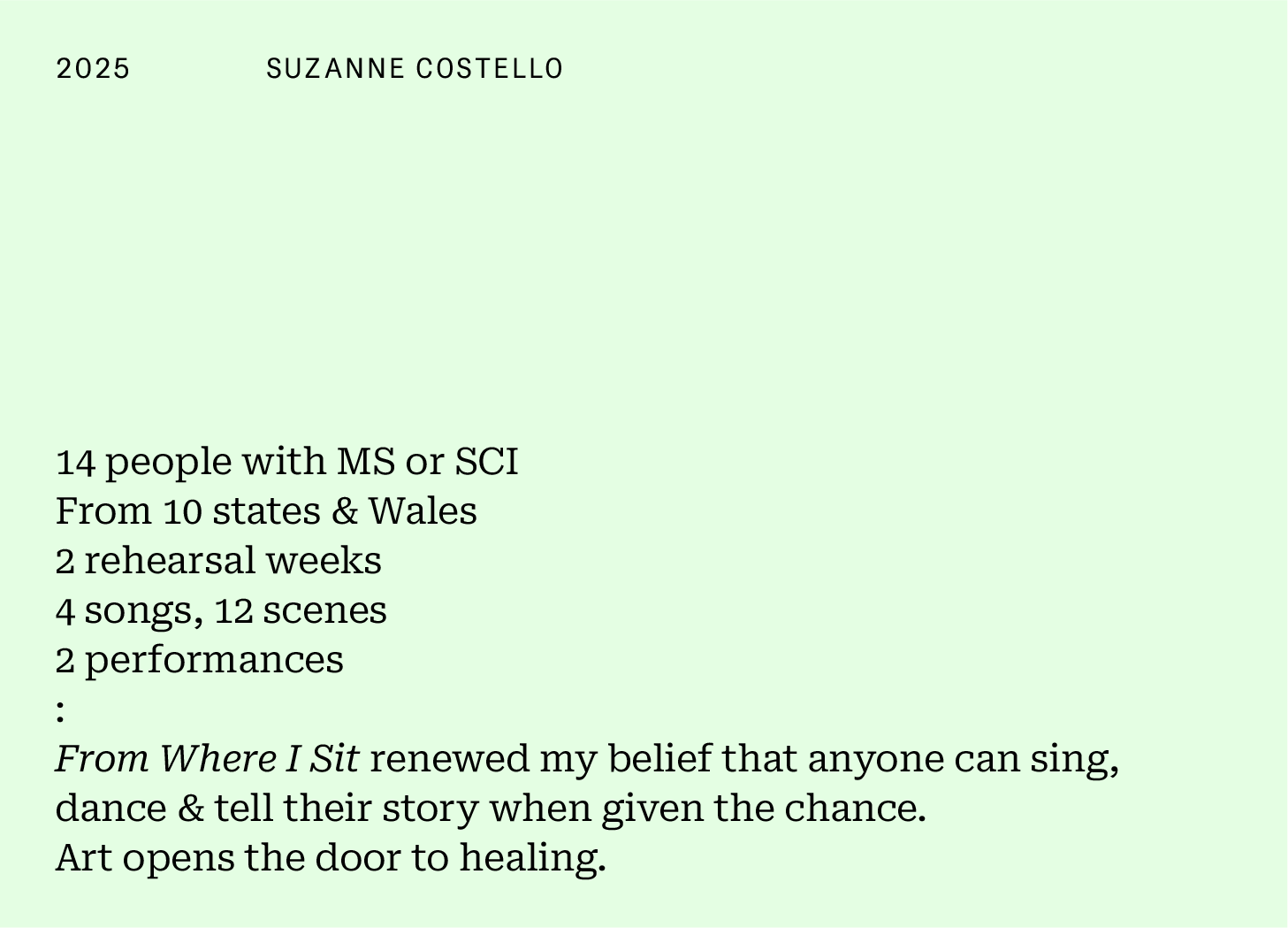 Suzanne chose an event in 2025 when we asked which moment in the last 26 years shaped the person you are today. She had just 46 words, 20:26. Here's how she responded...