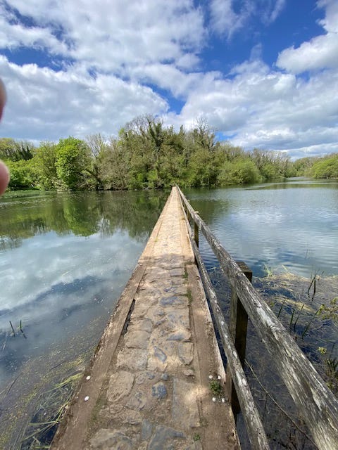 My bridge is a causeway, which also forms a dam. Built by The Cawdor family in Pembrokeshire, this large-scale intervention in the natural river flow creates impressive ponds which are famously covered in flowering waterlilies each year.